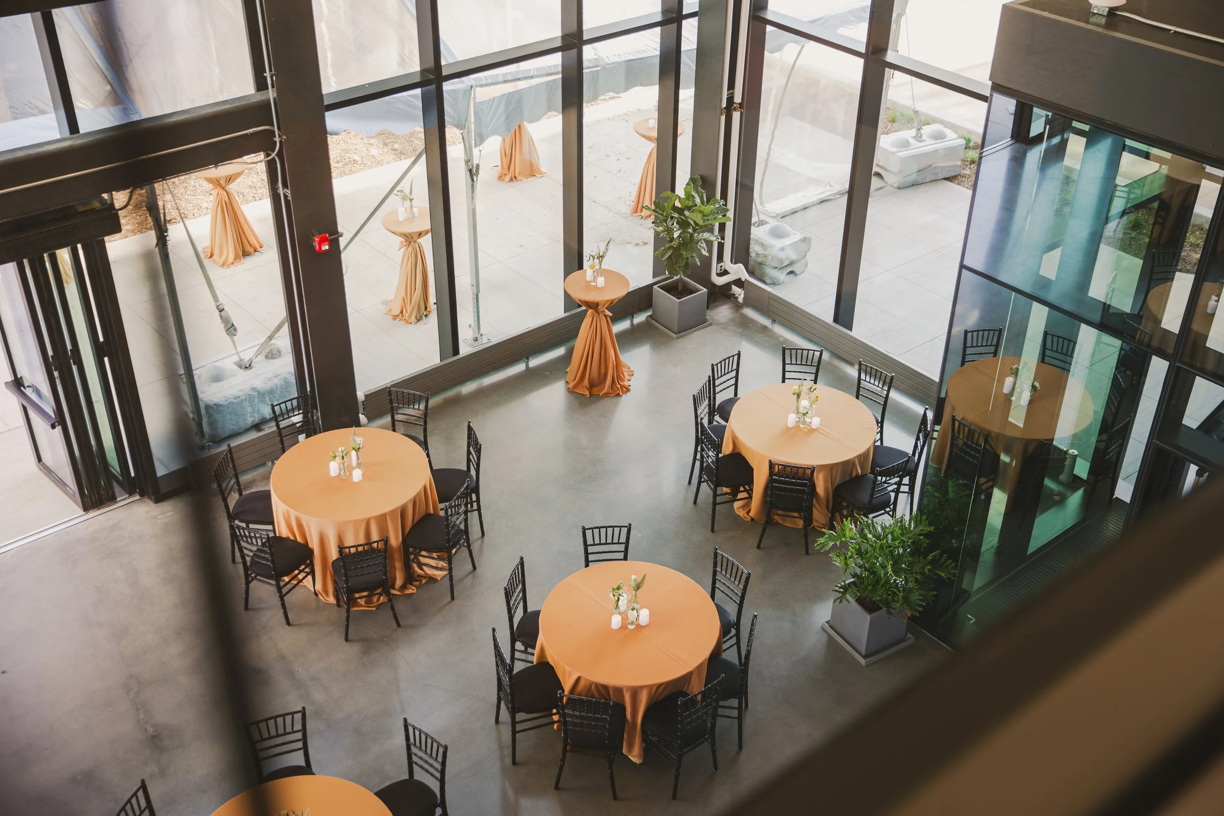 Floor to ceiling windows allow guests to enjoy exceptional views of the water and park. This beautiful and unique venue seats 60 inside with option to include a patio and boardwalk increasing the capacity to 120-300.